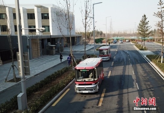 2月22日,智能網(wǎng)聯(lián)巴士901線測試車輛與普通城市公交車駛出公交站臺(tái)。雄安新區(qū)的智能網(wǎng)聯(lián)巴士近期正在進(jìn)行投入運(yùn)營前的道路測試,該巴士配備了超高感度攝像頭、超聲波雷達(dá)、激光雷達(dá)、毫米波雷達(dá)等感知設(shè)備,組成了車輛的“眼睛”。車輛可自主識(shí)別紅綠燈、道路提示牌和車道標(biāo)線等,做出跟車、超車、停車等動(dòng)作。中新社記者 韓冰 攝