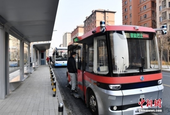 2月22日,智能網(wǎng)聯(lián)巴士901線測試車輛準(zhǔn)備發(fā)車。雄安新區(qū)的智能網(wǎng)聯(lián)巴士近期正在進(jìn)行投入運(yùn)營前的道路測試,該巴士配備了超高感度攝像頭、超聲波雷達(dá)、激光雷達(dá)、毫米波雷達(dá)等感知設(shè)備,組成了車輛的“眼睛”。車輛可自主識(shí)別紅綠燈、道路提示牌和車道標(biāo)線等,做出跟車、超車、停車等動(dòng)作。中新社記者 韓冰 攝