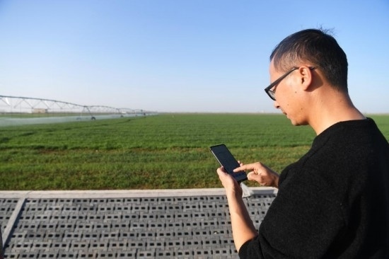 “在這兒工作兩年沒被曬黑,憑借的就是農(nóng)田里的各種新技術(shù)。”臺曉林笑著說。有了指揮調(diào)度平臺,氣象、水質(zhì)、墑情、苗情、蟲情“一屏統(tǒng)攬”,物聯(lián)網(wǎng)控制著250多個自動化噴灌設(shè)備和墑情、蟲情等智能終端。