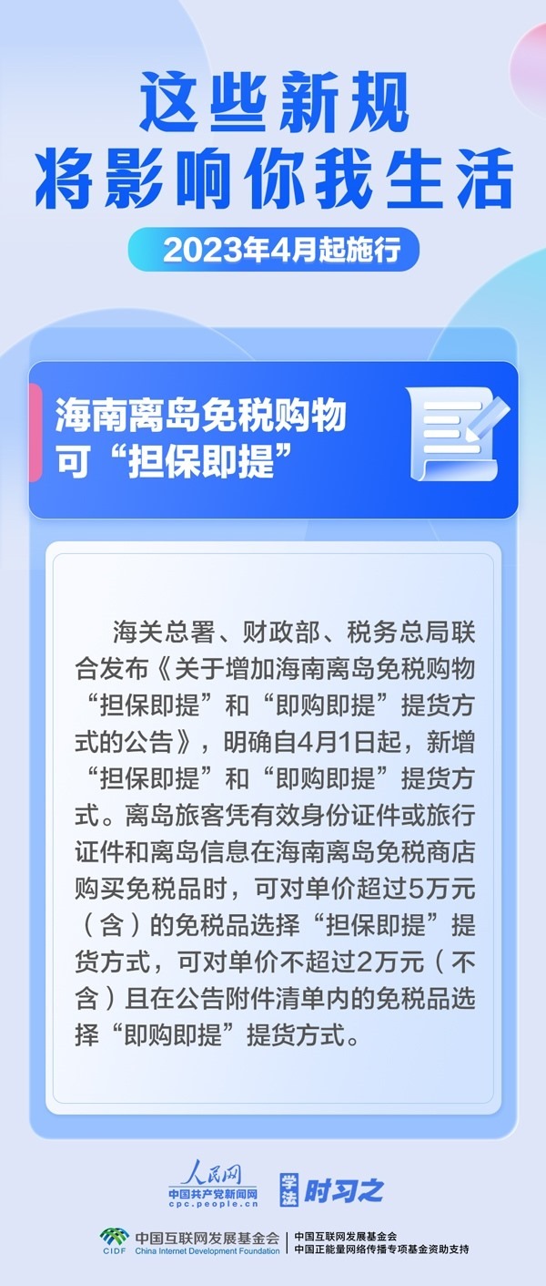 為在法治軌道上推進黃河流域生態(tài)保護和高質(zhì)量發(fā)展提供有力保障,海南離島免稅購物可“擔保即提”“即購即提”,啟用第七版出生醫(yī)學證明……4月,這些新規(guī)施行,將影響你我生活。