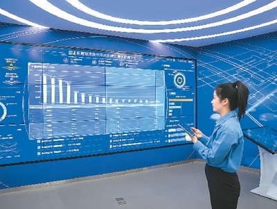 2月24日,在山東省東營經濟技術開發(fā)區(qū)的東營工業(yè)互聯(lián)網創(chuàng)新中心,碳排放管理員通過碳達峰大數(shù)據(jù)平臺,查看和展示開發(fā)區(qū)企業(yè)實時耗能情況。周廣學攝(人民視覺)
