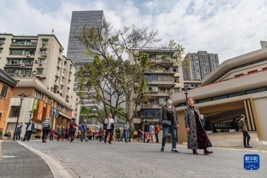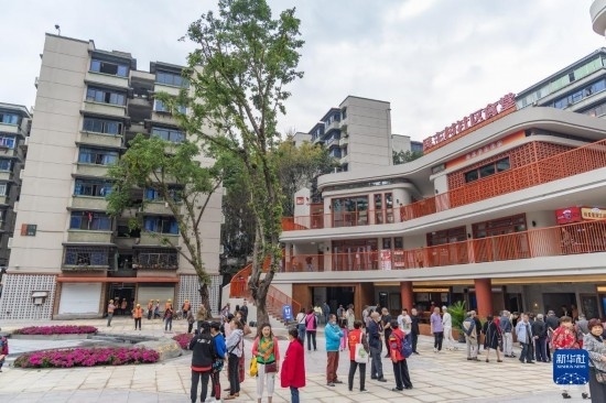 4月28日,重慶市九龍坡區(qū)謝家灣街道民主村片區(qū)城市更新項(xiàng)目(一期)正式竣工亮相,市民游客前來打卡。