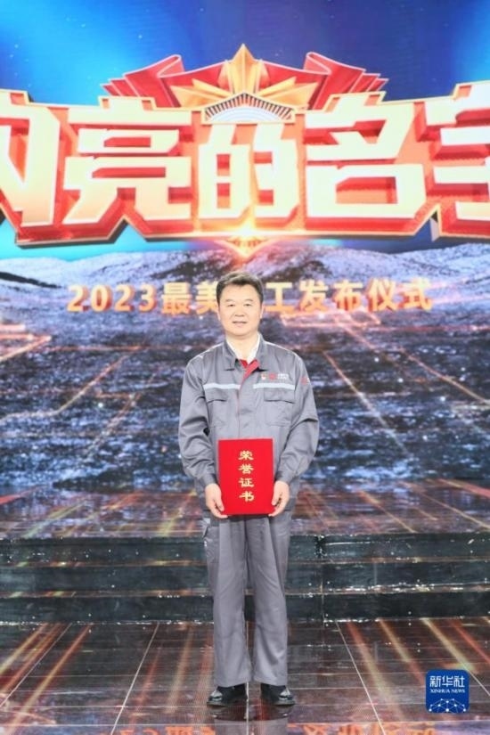2023年“最美職工”在發(fā)布儀式上合影留念(4月21日攝)。新華社發(fā)(王鑫 攝)