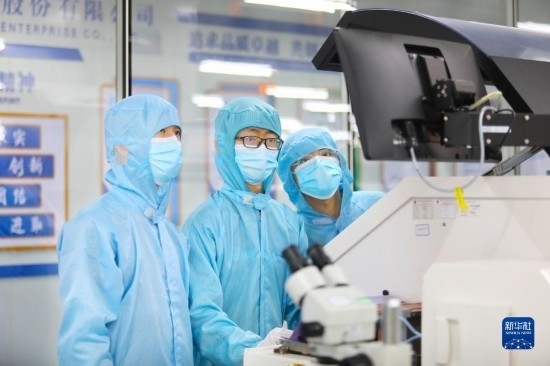 5月4日,青年技術(shù)員在重慶平偉實業(yè)股份有限公司無塵生產(chǎn)車間調(diào)試芯片生產(chǎn)設(shè)備。