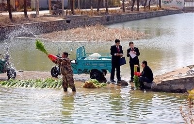 圖③:沂源法院悅莊人民法庭的干警進村對菜農進行交易風險提示。(資料圖片)