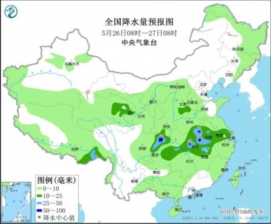 全國降水量預(yù)報圖(5月25日08時-26日08時)