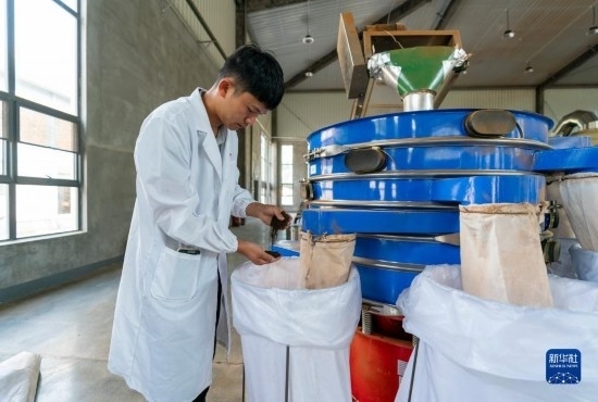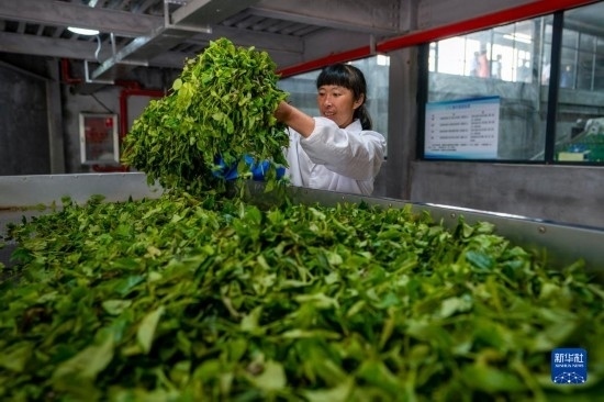 5月28日,一名工作人員在綠春縣一家茶葉加工企業(yè)查看生產(chǎn)的紅碎茶。