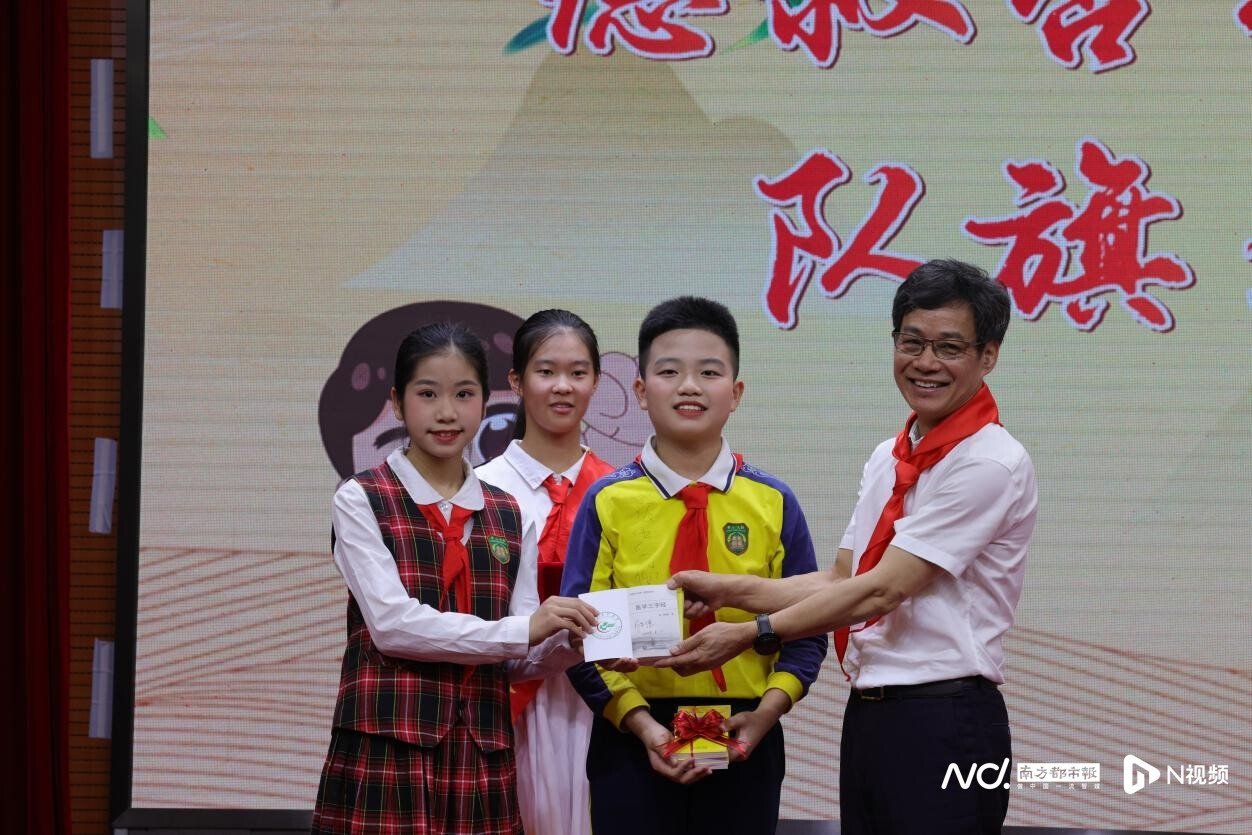 近年來(lái),廣東省中醫(yī)院開(kāi)展中醫(yī)藥文化進(jìn)校園活動(dòng)。5月31日,第一屆“德叔杏林研學(xué)中隊(duì)”的隊(duì)員即將畢業(yè),他們將隊(duì)旗鄭重地交回德叔手中,并收下德叔親筆簽名的《醫(yī)學(xué)三字經(jīng)》。而這面象征中醫(yī)藥文化的隊(duì)旗也傳遞到新一屆“德叔杏林研學(xué)中隊(duì)”隊(duì)員的手中,同時(shí),德叔還贈(zèng)送了中藥種子,寓意中醫(yī)藥文化生生不息、薪火傳承,在雙方共同打造的這片中醫(yī)藥文化熱土生根發(fā)芽,開(kāi)花結(jié)果。