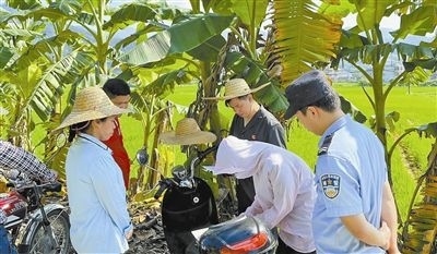 烈日當(dāng)空,在暑氣熏蒸的稻田里,干警敬業(yè)、負(fù)責(zé)的工作態(tài)度讓當(dāng)事人深感佩服,“法官量的是多少就是多少,超出了的我就還給她?!笨匆姳桓鎽B(tài)度有所緩和,藍(lán)偉華覺得調(diào)解有了可能性,決定到村委會(huì)繼續(xù)做調(diào)解工作。