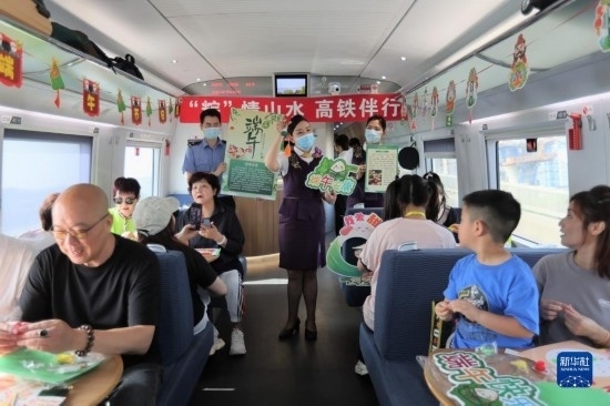 端午節(jié)前夕,鐵路上海客運段在列車上邀請旅客參加端午民俗活動,迎接端午佳節(jié)。