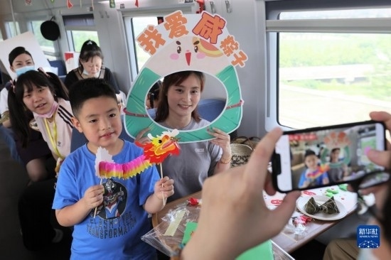 端午節(jié)前夕,鐵路上??瓦\段在列車上邀請旅客參加端午民俗活動,迎接端午佳節(jié)。