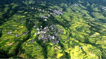 9月10日,無(wú)人機(jī)航拍的廣西三江侗族自治縣獨(dú)峒鎮(zhèn)的高山梯田秋色正濃,美如畫卷。