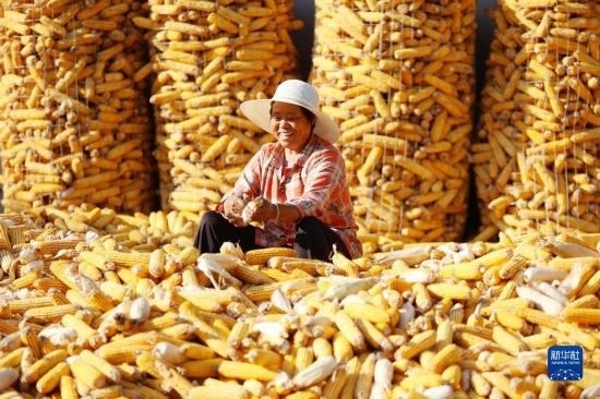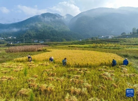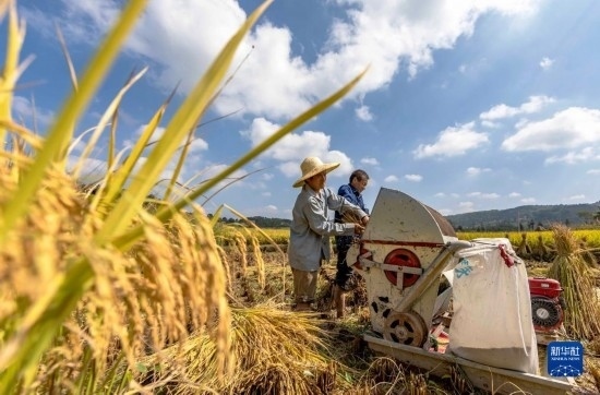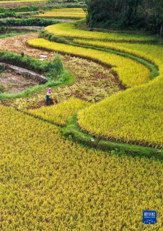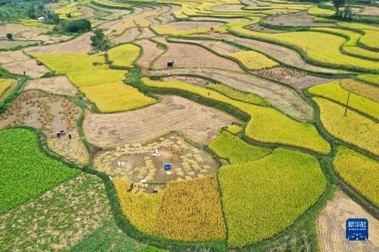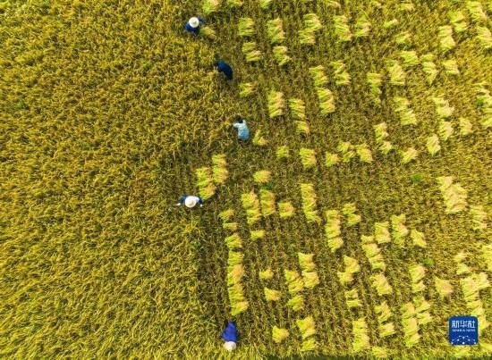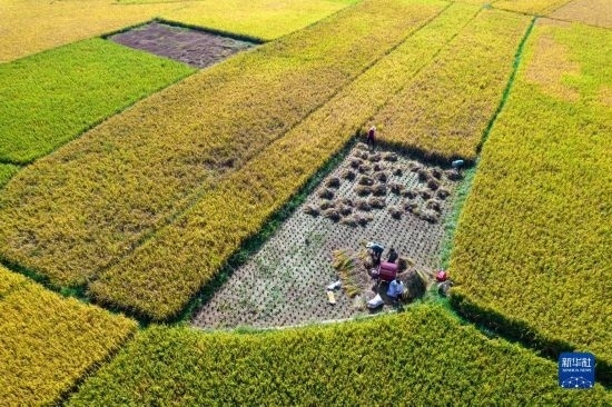 金秋時節(jié),各地農(nóng)民搶抓晴好天氣忙收獲,田間地頭一派繁忙景象。新華社發(fā)(胡攀學 攝)