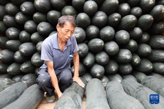 9月13日,村民在貴州省黔東南苗族侗族自治州施秉縣城關(guān)鎮(zhèn)白塘村將收獲的冬瓜裝車,準備供應市場。