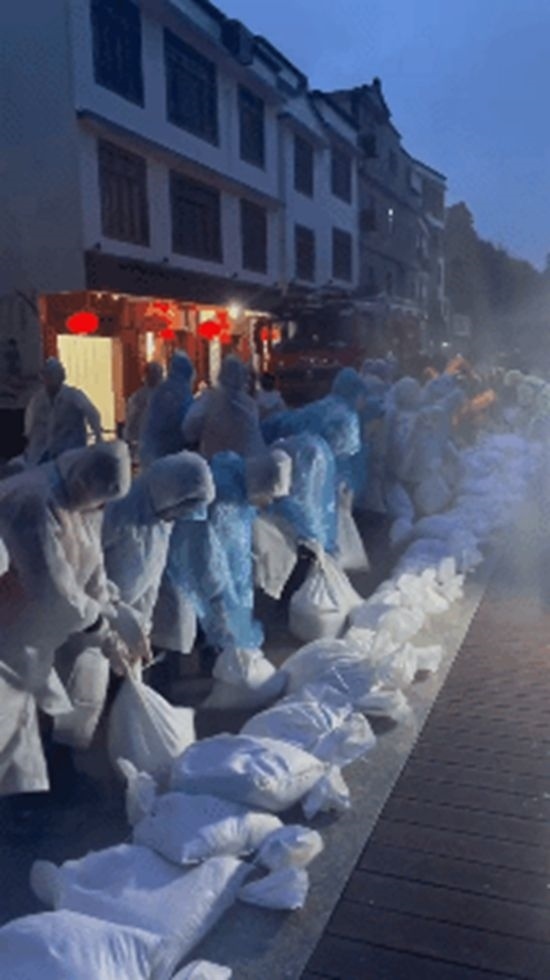 “加快速度裝好沙包!”“一個一個往后傳!”按照錢排鎮(zhèn)政府的統(tǒng)一部署,在保證安全的前提下,200余名學(xué)生志愿者參與沙袋填裝、搬運(yùn)和堆疊等臺風(fēng)防御工作。