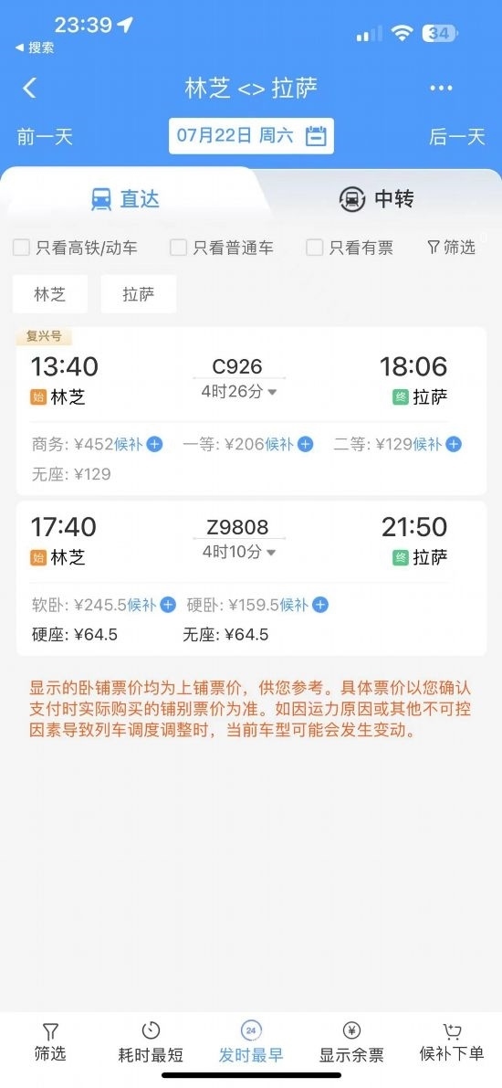 通過(guò)在鐵路售票APP上查詢發(fā)現(xiàn),從林芝開(kāi)往拉薩的復(fù)興號(hào)城際列車的二等座票價(jià)為129元,直達(dá)特快列車硬座為64.5元?!跋啾容^原先180元的客運(yùn)汽車票價(jià),直達(dá)特快列車便宜了近乎三分之一?!辈芟壬锌卣f(shuō)道。
