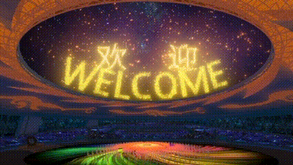 當(dāng)宣布本屆世界大學(xué)生運(yùn)動會開幕時,空中金色焰火熱烈綻放,隨后空中出現(xiàn)“歡迎”“WELCOME”字樣,隨著大運(yùn)會火炬塔被點(diǎn)燃,焰火在空中打出成都第31屆世界大學(xué)生夏季運(yùn)動會U形會徽,體育場上空焰火呈現(xiàn)英文“Make Dreams Come True”,命運(yùn)與共,成就夢想。