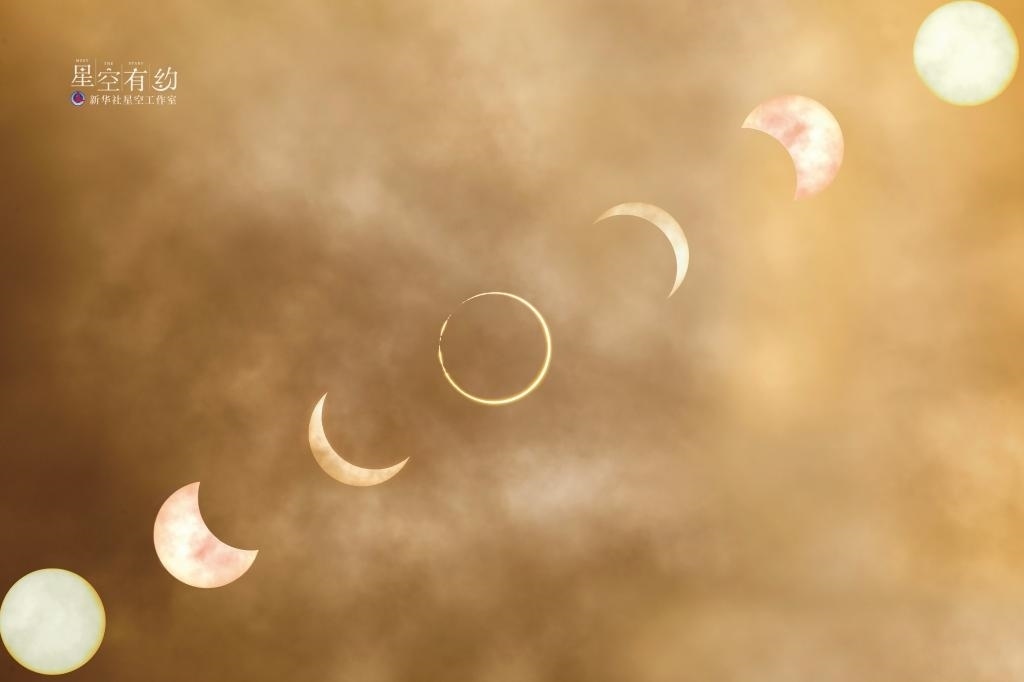 陜西省天文攝影愛好者薛飛2020年6月21日在西藏阿里拍攝的日環(huán)食(多張疊加)。(本人供圖)
