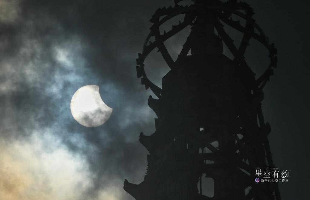 2023年4月20日出現(xiàn)在印度尼西亞雅加達上空的日食景觀。新華社發(fā)(祖卡南攝)