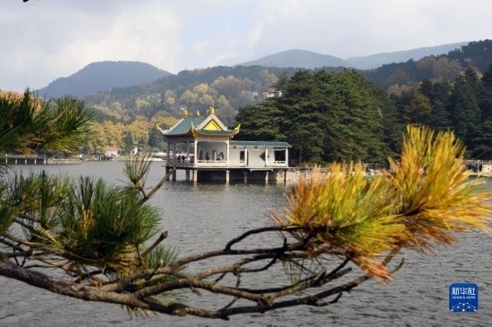 10月20日拍攝的廬山如琴湖秋景(無人機照片)。