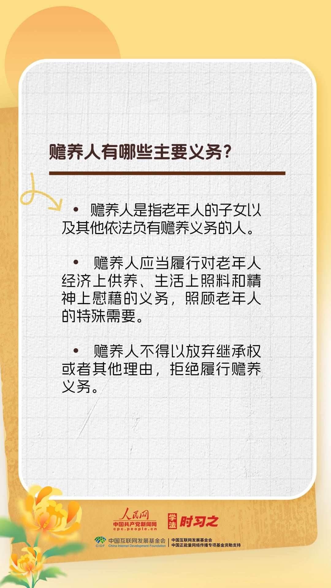 《中華人民共和國(guó)老年人權(quán)益保障法》的出臺(tái)進(jìn)一步保障了老年人的合法權(quán)益,弘揚(yáng)了中華民族敬老、養(yǎng)老、助老的美德。重陽(yáng)節(jié),一起來(lái)了解老年人權(quán)益保障法的相關(guān)規(guī)定。