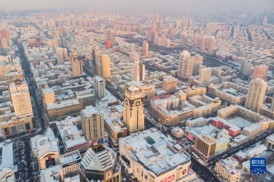 這是11月9日拍攝的哈爾濱主城區(qū)雪景(無(wú)人機(jī)照片)。