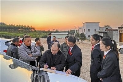 庭審結(jié)束后,承辦法官邀請(qǐng)中間人參與調(diào)解,雙方當(dāng)事人最終達(dá)成和解協(xié)議,握手言和。在法院干警和當(dāng)?shù)卮迕竦囊娮C下,原告以車當(dāng)桌,當(dāng)場手寫撤訴申請(qǐng)書,為靜謐祥和的鄉(xiāng)村添上了一道靚麗的“楓”景線。(記者 吳琪 通訊員 夏典)