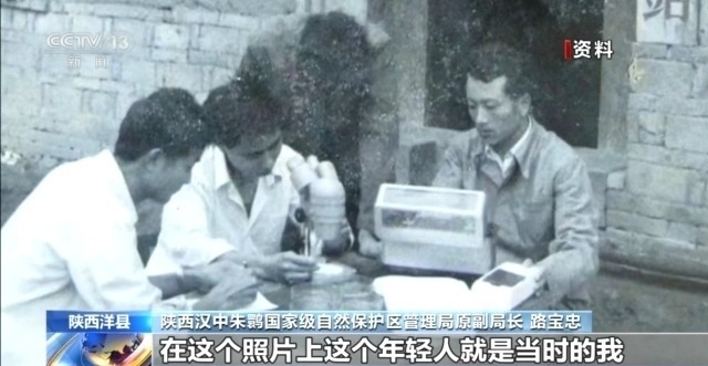 陜西漢中朱鹮國家級自然保護(hù)區(qū)管理局原副局長 路寶忠:這個(gè)照片上這個(gè)年輕人就是當(dāng)時(shí)的我。我們4人小組要在野外去觀察朱鹮,帶上望遠(yuǎn)鏡,帶上海拔儀,然后掌握朱鹮的一些活動(dòng)規(guī)律。它在什么地方活動(dòng),這個(gè)地方海拔高度有多高,然后我們要做好觀察記錄。