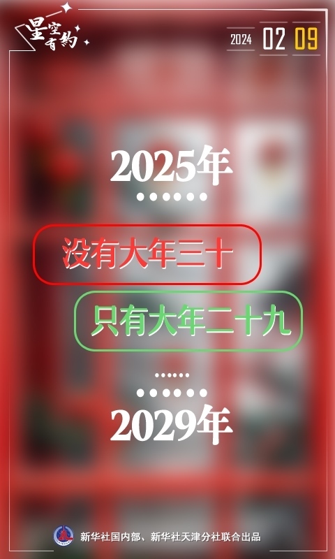 新華社天津1月13日電(記者周潤(rùn)?。┙找粍t“未來5年都沒有大年三十”的消息引發(fā)公眾關(guān)注。消息稱,2024年2月9日是近年來最后一個(gè)大年三十,因?yàn)閺?025年起至2029年都沒有大年三十,只有大年二十九。天文科普專家表示,大年三十時(shí)有時(shí)無是正常歷法現(xiàn)象,系農(nóng)歷大小月所致。