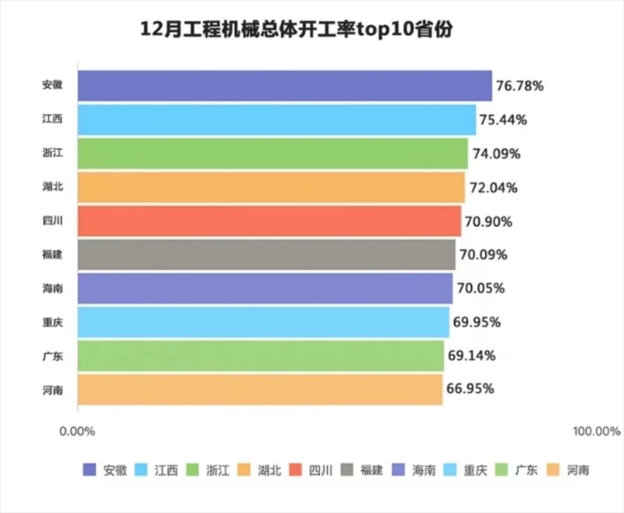 挖掘機是基礎(chǔ)設(shè)施建設(shè)的“標配”,是反映基礎(chǔ)設(shè)施建設(shè)、觀察固定資產(chǎn)投資等經(jīng)濟變化的風向標?!把胍曍斀?jīng)挖掘機指數(shù)”1月16日發(fā)布了最新相關(guān)數(shù)據(jù)。2023年全國工程機械開工率為58.57%,各項基礎(chǔ)設(shè)施建設(shè)穩(wěn)中向好,不少省份勇扛“穩(wěn)增長”大旗,整體數(shù)據(jù)表現(xiàn)跑贏2022年。