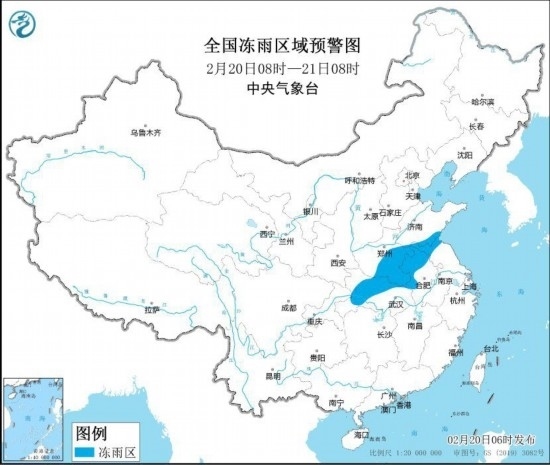 中央氣象臺(tái)2月20日06時(shí)發(fā)布冰凍黃色預(yù)警:
