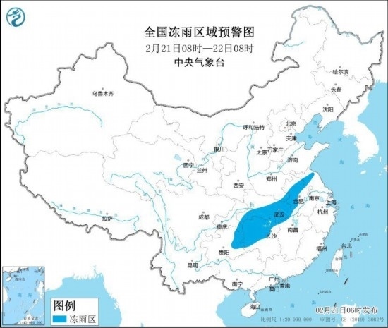 全國凍雨區(qū)域預(yù)警圖(2月21日8時(shí)-22日8時(shí))