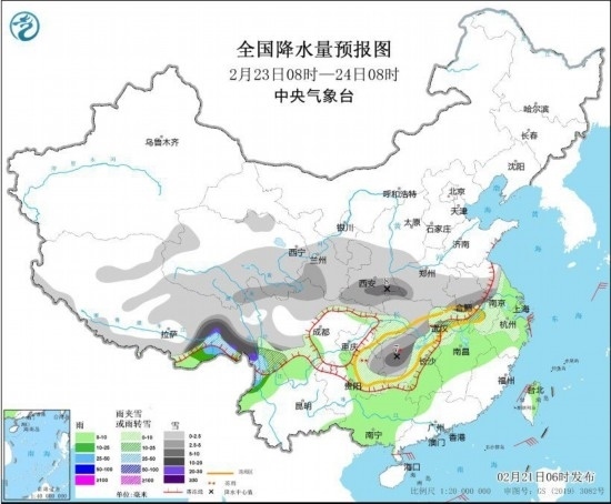 全國降水量預(yù)報(bào)圖(2月23日8時(shí)-24日8時(shí))