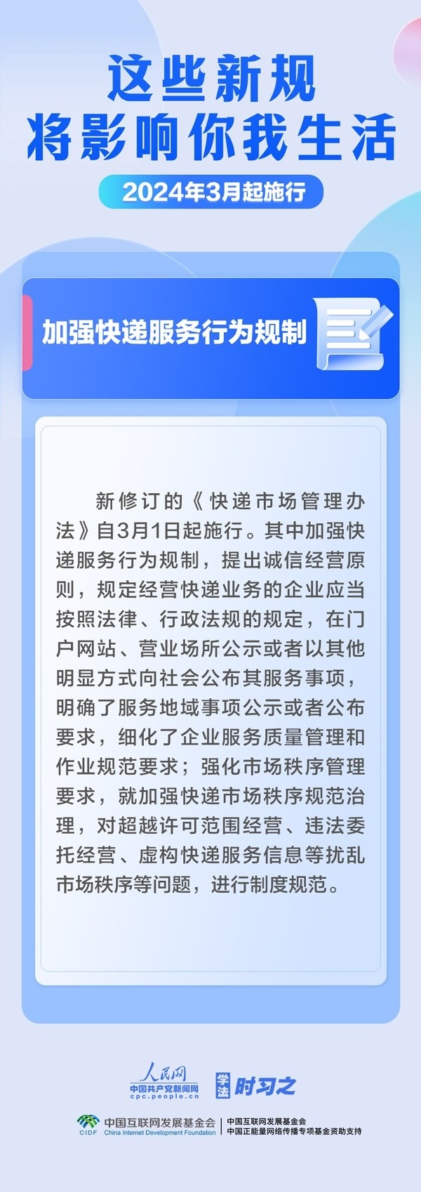 加大對(duì)行賄行為懲治力度;規(guī)范檔案收集管理;加強(qiáng)快遞服務(wù)行為規(guī)制……3月起,這些新規(guī)施行,將影響你我生活。