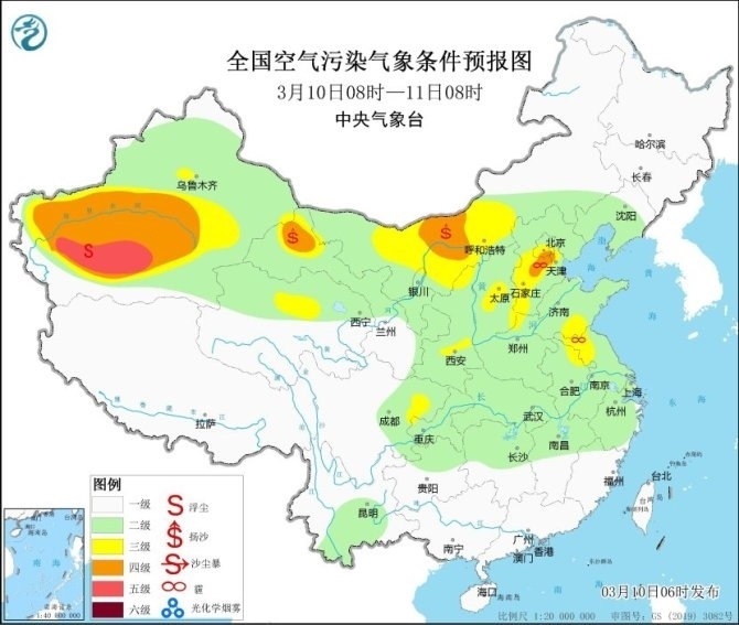 另外,受大風(fēng)天氣影響,10日,內(nèi)蒙古中西部、寧夏北部、甘肅河西、青海北部等地的部分地區(qū)有揚沙或浮塵。請公眾戶外活動做好防風(fēng)防沙措施,室內(nèi)關(guān)好門窗。