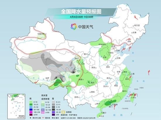央視網(wǎng)消息:據(jù)中國天氣網(wǎng)消息,預計今天(4月8日),江南、華南等地降雨將明顯減少減弱,迎來降雨間歇期。但在青藏高原中東部,未來三天仍將出現(xiàn)持續(xù)性雨雪天氣。此外,今明兩天,東北、華北等地在冷空氣以及降水的影響下,氣溫將普遍下降。冷空氣過后,上述地區(qū)氣溫又會快速回升。