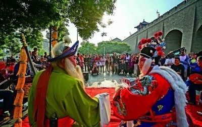 在西安文昌門(mén)外,秦腔愛(ài)好者表演秦腔折子戲《蘇武牧羊》。