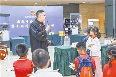 圖①:法官在珍品庫房為小學(xué)生講解野生動(dòng)物保護(hù)法律知識。