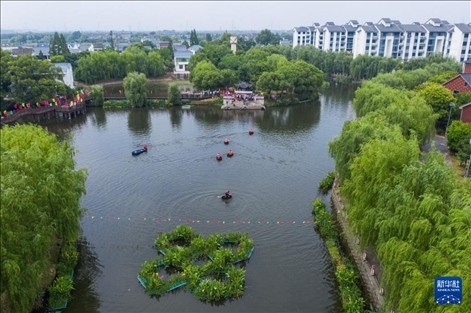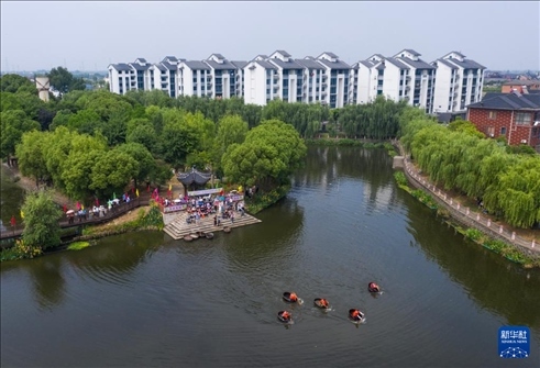 當(dāng)日,浙江省湖州市吳興區(qū)東林鎮(zhèn)舉辦“慶端午 劃菱桶”水鄉(xiāng)端午趣味民俗活動,來自東林鎮(zhèn)各村的村民們在泉益村參加了水鄉(xiāng)劃菱桶比賽、荷塘釣小龍蝦、做艾草花束、包粽子等端午趣味民俗活動,在初夏時(shí)節(jié)呈現(xiàn)江南水鄉(xiāng)特有的迎端午氣氛。