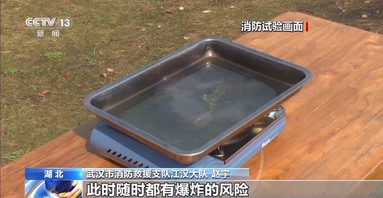 剛才我們看到的兩起事故都是卡式爐爆炸引起的??ㄊ綘t是以瓶裝丁烷氣為主要燃料,用火進(jìn)行直接加熱的非固定式烹飪廚具。在露營中,很多人選擇攜帶卡式爐進(jìn)行烹飪,那么,什么情況下卡式爐可能會發(fā)生爆炸?使用過程中要注意哪些問題?消防人員通過試驗來給我們做了演示和講解。