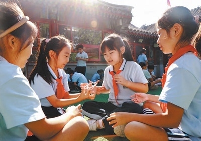 北京市東城區(qū)黑芝麻胡同小學“課間一刻鐘”,學生們在做游戲。黃 超 郭 謙攝影報道
