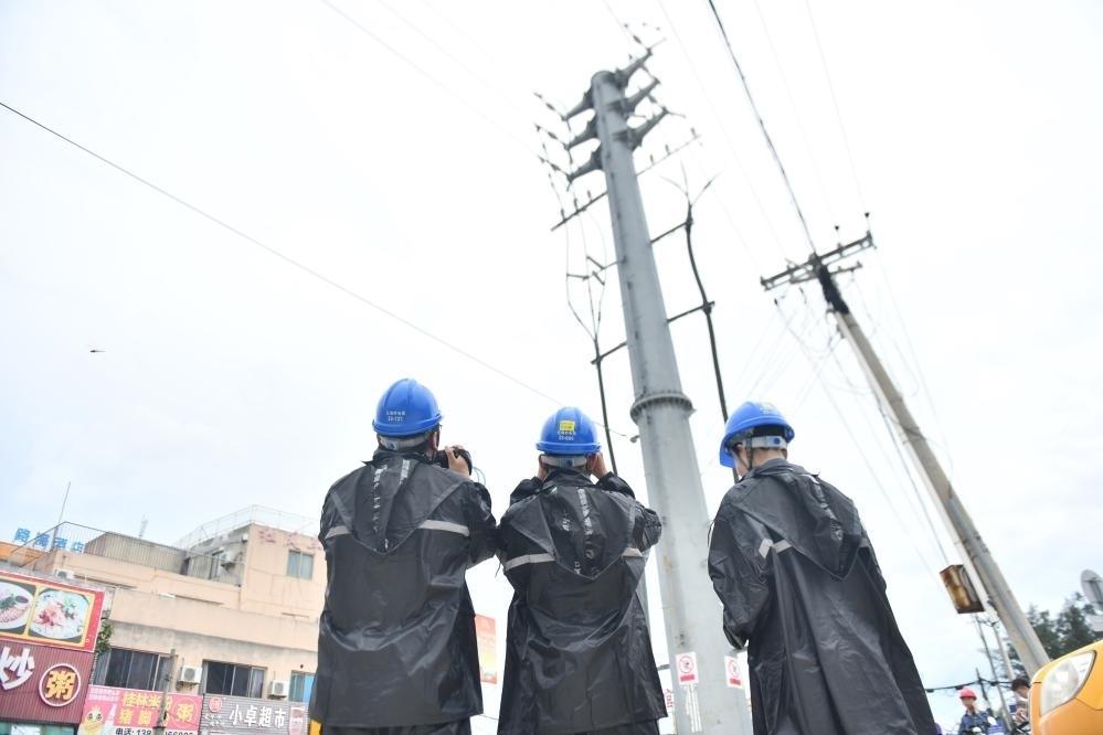 9月6日,在廣西北海市僑港鎮(zhèn),南方電網(wǎng)北海供電局的工作人員在監(jiān)測線路。新華社記者 黃孝邦 攝