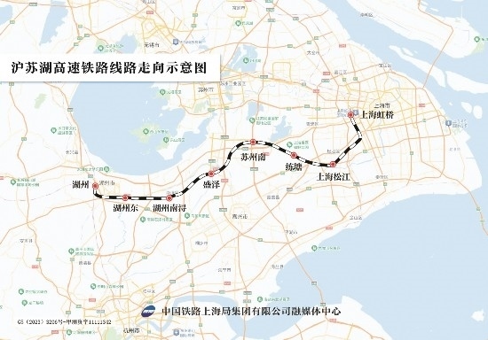 滬蘇湖高鐵是上海、蘇州、湖州基礎(chǔ)設(shè)施互聯(lián)互通的重大項目,也是長三角高鐵聯(lián)網(wǎng)、補網(wǎng)、強鏈的重點項目。滬蘇湖高鐵由上海虹橋站引出,途經(jīng)蘇州市,終至湖州市湖州站,線路全長約163公里,設(shè)計時速350公里,設(shè)上海虹橋、上海松江、練塘、蘇州南、盛澤、湖州南潯、湖州東、湖州站等8座車站。