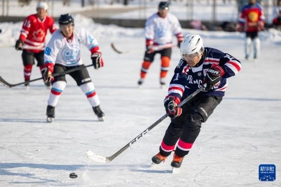 1月18日,人們在哈爾濱市丁香公園內(nèi)打冰球。