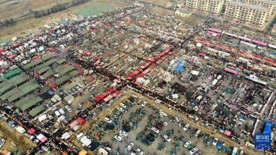 這是位于青島西海岸新區(qū)的泊里大集現(xiàn)場(1月18日攝,無人機(jī)照片)。