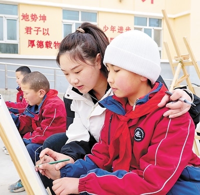 2023年,高潮從山西大同大學(xué)美術(shù)學(xué)院畢業(yè)前,看到了西部計(jì)劃的招募信息?!耙ツ敲催h(yuǎn)的地方當(dāng)老師嗎?”高潮有點(diǎn)猶豫。她小時(shí)候在鄉(xiāng)村小學(xué)讀書,因?yàn)槔蠋熒?,很多課程都開展不起來(lái),“想到自己小時(shí)候的經(jīng)歷,我下定了決心?!?/p>