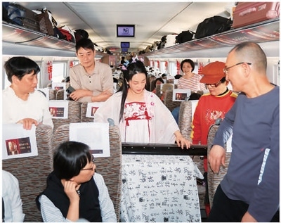 為提升旅游品質(zhì),相關(guān)部門打造了品質(zhì)型、舒適型、普惠型等不同產(chǎn)品體系的銀發(fā)旅游列車。在中國鐵路成都局集團(tuán)打造的精品旅游專列Y472次“熊貓專列·什邡號”列車?yán)铮O(shè)有高級雙人間、高級四人間、標(biāo)準(zhǔn)四人間及多功能車和餐車。旅途中,游客不僅可以在KTV包間唱歌,在棋牌室娛樂,還可以在車廂內(nèi)看電視?!拔业谝淮误w驗(yàn)旅游列車,和平時的火車完全不一樣。車上可以唱歌、品茶還有各種娛樂活動,感覺非常驚喜?!庇慰蛧?yán)女士說。