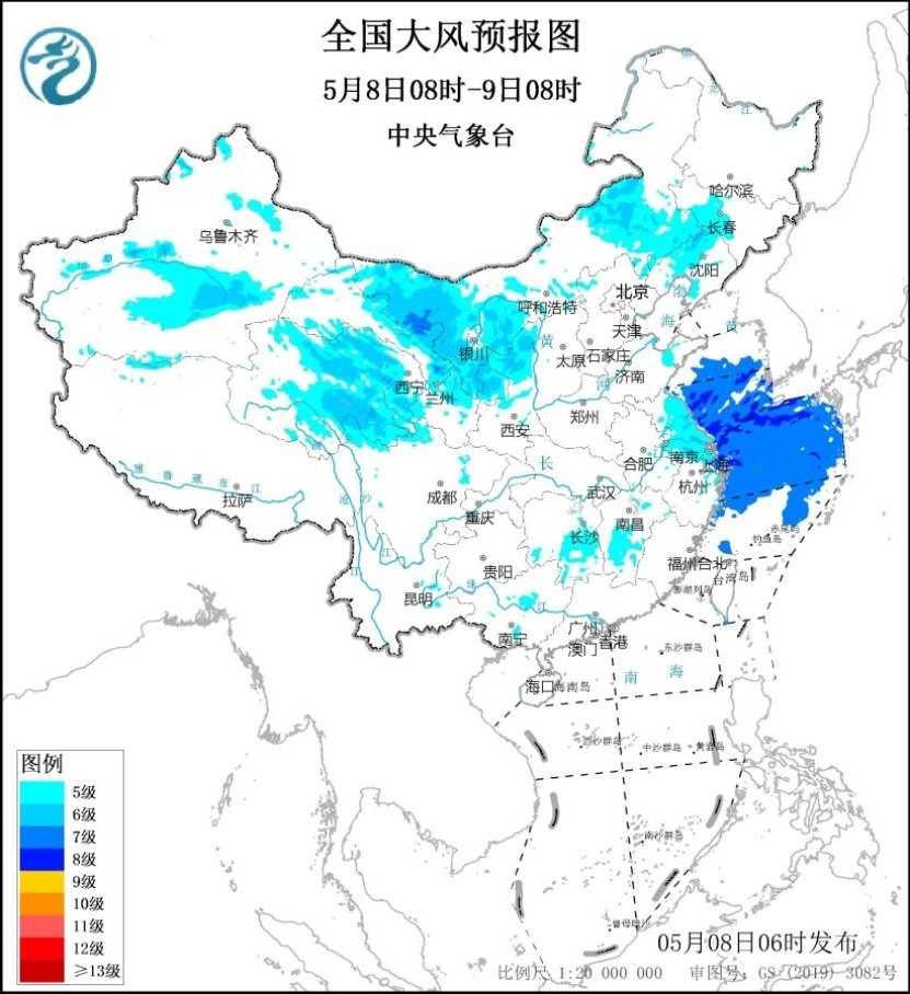此外,受冷空氣影響,8日至9日,西北地區(qū)東部、內(nèi)蒙古、華北將先后有4~8℃降溫,上述部分地區(qū)有4~6級(jí)風(fēng),陣風(fēng)7~10級(jí),內(nèi)蒙古西部、新疆南疆等地部分地區(qū)伴有沙塵天氣。目前,大風(fēng)藍(lán)色預(yù)警生效中。