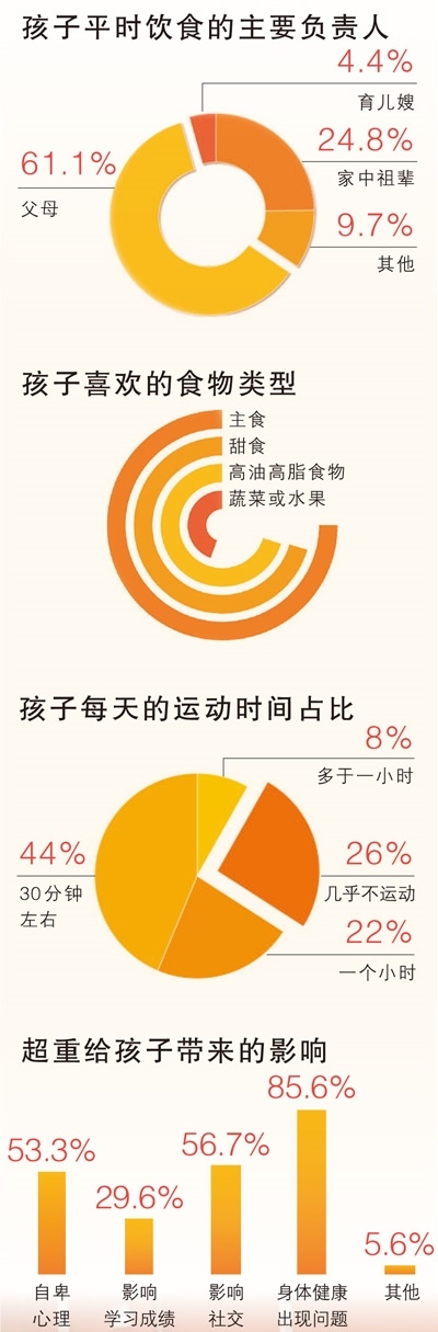 5月19日,人民日?qǐng)?bào)健康客戶端聯(lián)合全國(guó)近30家兒童醫(yī)院開展兒童青少年肥胖現(xiàn)狀調(diào)研,回收的近300份肥胖兒童有效問卷顯示,超重給孩子帶來了諸多問題,其中身體健康出現(xiàn)問題的比例高達(dá)85.6%,而心理出現(xiàn)問題的比例達(dá)53.3%。