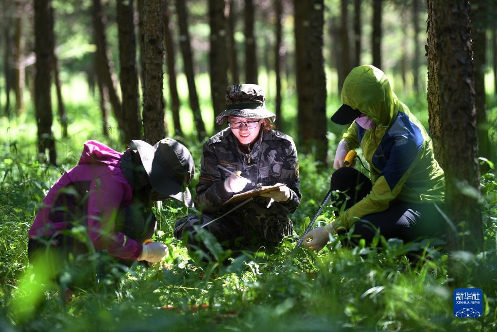 工作人員在河北塞罕壩機(jī)械林場(chǎng)采集數(shù)據(jù)(2017年7月12日攝)。新華社記者王曉攝